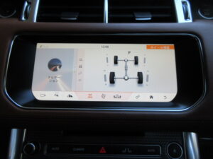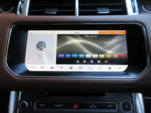 L494レンジローバースポーツではシフターはノブTYPEのスポーツシフトが採用されております。シフト周りにはご覧の通りテレインレスポンス、ダイナミックモード、エアサスペンション、HDC、アイドリングストップ、EPBのスイッチ類が並んでいます。