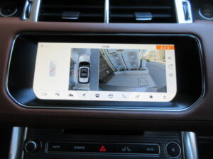 お車には、フロント/サイド右/サイド左/リアにカメラが装着された360度全方位サラウンドカメラシステムを装備。各カメラの映像は純正タッチパネルモニターに映し出されます。