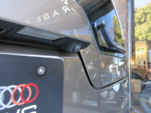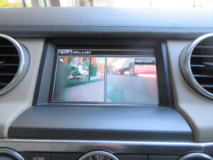 お車には、フロント右/フロント左/サイド右/サイド左/リアにカメラが装着された360度全方位サラウンドカメラシステムを装備。各カメラの映像は純正タッチパネルモニターに映し出されます。