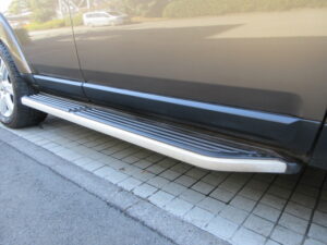 小さなお子様や女性の方の乗り降りに便利な【サイドステップ】も装着済でございます。こちらは左側側面に10cm程の傷が入っている部分がございますので、新品交換を行う予定でございます、