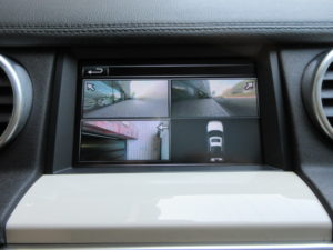 また、お車にはフロント左右、サイド右、サイド左、リアにカメラが装着された全方位サラウンドカメラシステムが装備されております。カメラの映像は純正タッチパネルモニターに映し出されます。