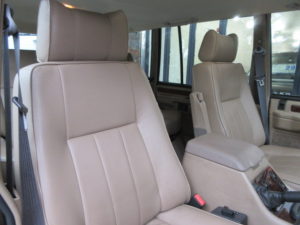 提携専門業者様による全席シートリペア施工済。本革シートはフロントシートもリアシートもご覧の通り、大変キレイな状態を保っております。