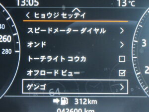 ステアリングの奥に見えますTFTメーターパネルの中央には、車両の設定を変更可能なインフォメーションパネルが用意されております。充実の先進装備がパッケージとなった純正オプションの【ドライブプロパック】も装備しております。その先進装備もコチラで設定が可能です。