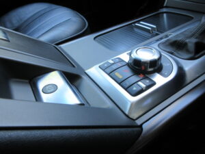 シフト周りには、大きなドリンクホルダーが2本分、エアサスペンション、HDC、副変速機、テレインレスポンス、EPB等の操作スイッチが機能的に配置されております。