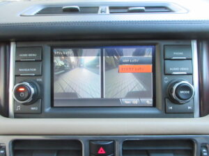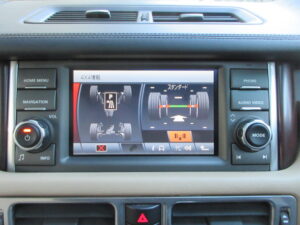 ステアリングの奥に見えますメーターパネルがフルTFTメーターパネルになったのは、この3rdレンジローバー後期モデルからでございました。メーターの中央部には車両の設定を自由に変更可能なインフォメーションパネルが用意されております。