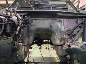 その後、ボンネット、カウルトップパネル、各ドアを取り外して作業を行ってまいります。