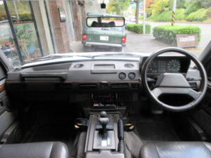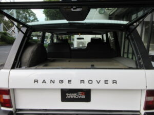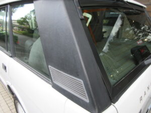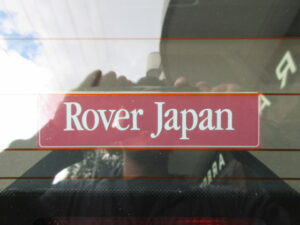 リアアッパーテールゲートのガラス面には当時の正規販売会社でございましたRover Japanのステッカーがキレイに現存しております。因みに、今の正規輸入会社、インポーターはジャガー・ランドローバーを経てJLR社と変遷。