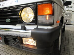 ※クラシックレンジローバーは新車販売から約35年経過したモデルでございます。お客様の中には、全て完璧を当然とされていらっしゃる方もいらっしゃいますが、弊社販売車両はレストア車両ではございません。出来る限りお客様ご自身での現車確認をお願い致します。ご購入決定時の最終判断でのご試乗は喜んでお受け致します。通常販売車両の納車前点検整備は、法定12か月点検範囲(車検の無いお車は24ケ月点検範囲)及び油脂類、消耗品類の交換及び新品バッテリー交換、テスター点検にてなるべく安くお乗り出しいただけるように納車点検整備費用は10万円とさせていただいております。別途予防的な整備プランやレストア作業まで有償でお受けする事自体は可能ですが、特にレストア作業の場合にはご納車までにかなりお時間をお待ちいただく事になります。ご了承の程宜しくお願い致します。
