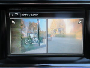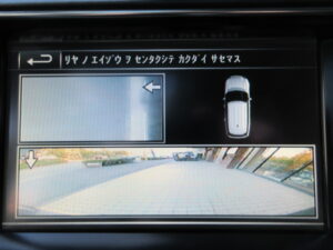 お車には、フロント右/フロント左/サイド右/サイド左/リアにカメラが装着された360度全方位サラウンドカメラシステムを装備。各カメラの映像は純正タッチパネルモニターに映し出されます。