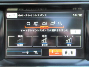シフターにはロータリーシフターが採用されております。シフトゲートの周りには、テレインレスポンス2オート、副変速機、エアサスペンション、アイドリングストップ、HDC、エアサスペンション、EPB等のスイッチが機能的に配置されております。
