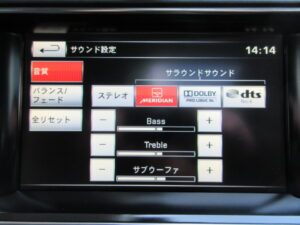 純正オーディオシステムはMERIDIANサウンドの上級グレード、MERIDIANサラウンドサウンドシステムが装着されております。
