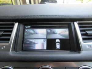 お車には、フロント右/フロント左/サイド右/サイド左/リアにカメラが装備された360°全方位サラウンドカメラシステムが装着されております。各カメラの映像は純正タッチパネルモニターに映し出されます。