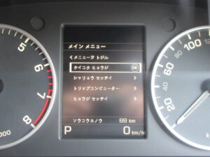 ステアリングの奥に見えますメーターパネル中央のTFTモニターには車の設定を変更可能なインフォメーションパネルが用意されております。